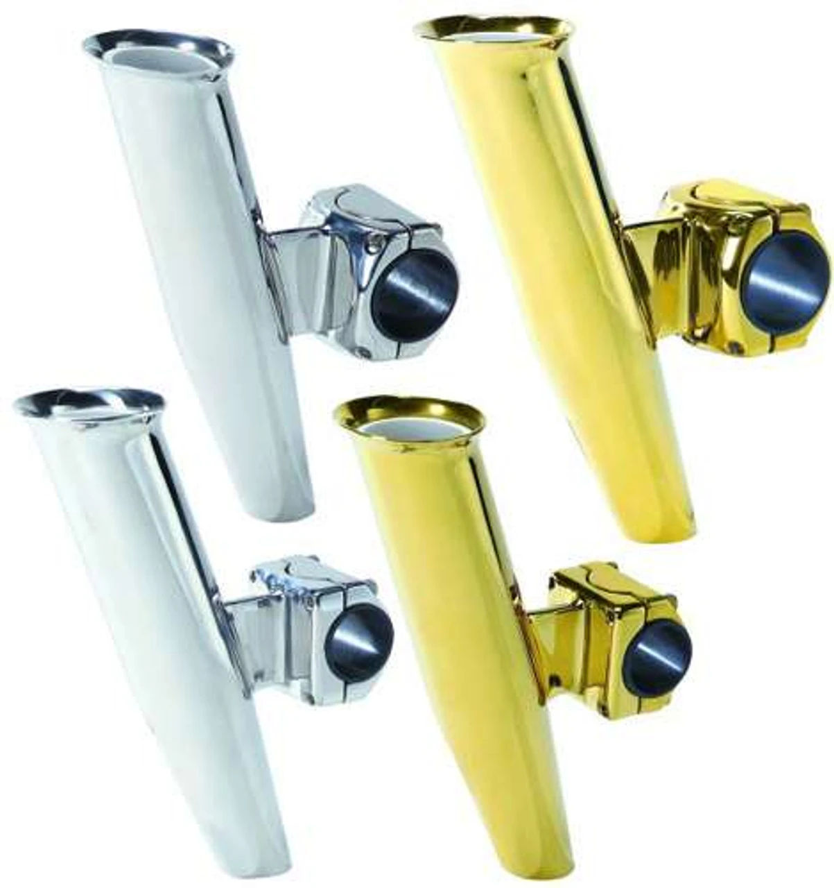 C.E. Smith 2-Way Clamp On Mid Mount Rod Holders feature a patented clamp system, which allows each rod holder to serve as a vertical or horizontal unit. The clamp cap comes attached horizontally. Unscrew the cap, turn 90° and the rod holder becomes a vertical clamp.