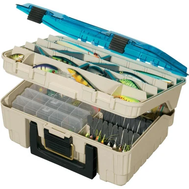 CDS storage is available in the upper base of the Plano 1349. The base itself can hold 3449 StowAway utility boxes (not included) along with two removable spinnerbait racks. This stylish blue and beige satchel features a DuraView cover.