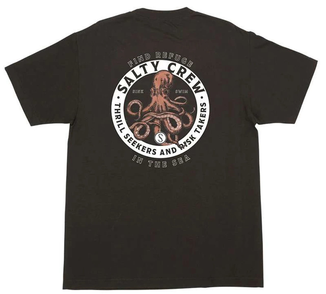 Salty Crew Deep Reach Short Sleeve T-Shirts are designed with a comfortable standard fit. Made with comfortable 100% cotton making these t-shirts ideal for long days out on the water. The Deep Reach tee by Salty Crew features a unique round octopus screen printed design on the back with small version on the front.